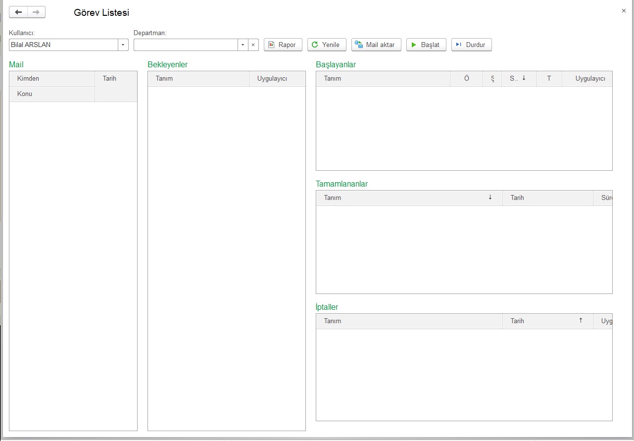 - İptaller: İptal edilen görevler listesidir. Bekleyenler ve başlayanlar listelerinden sürükleyerek bu listeye görevlerinizi taşıyabilirsiniz.