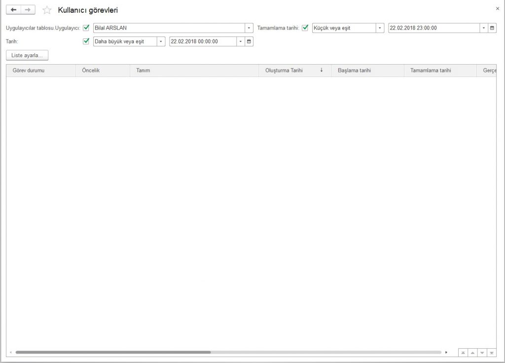 Kullanıcı Görevleri Raporu: Tüm görevleri raporlayabilirsiniz. Kendi filtreleriniz tanımlayarak dinamik bir rapor oluşturabilirsiniz.